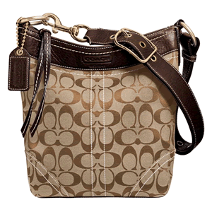 1) コーチ・シグネチャースモールダッフル スタイルナンバー:10402 色:カーキ地/こげ茶トリム 米国定価:228ドル、日米間送料2400円。