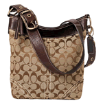 3) コーチ・オプティックシグネチャーラージホーボー スタイルナンバー:10403 色:カーキ地/こげ茶トリム 米国定価:298ドル、日米間送料3000円。
